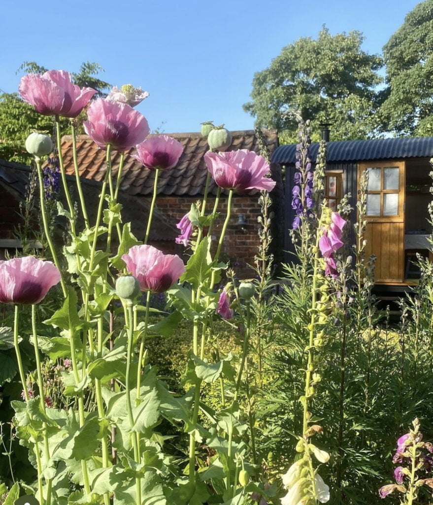 Anita’s shepherd’s hut is tucked into her lovely cottage garden