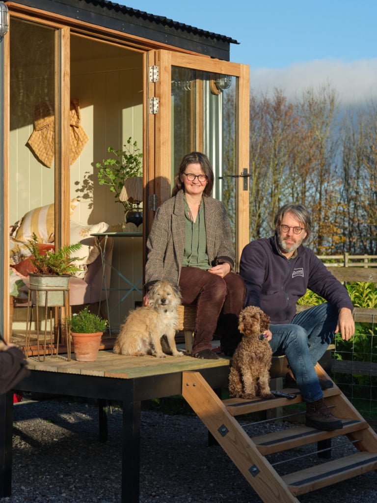 Co-founders Richard and Jane on the steps of the Sixpenny Hut House™