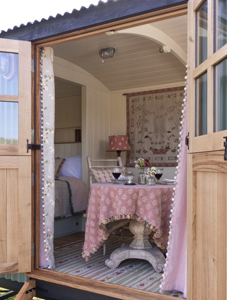 With blue skies overhead and the Dorset countryside as our backdrop, we rolled a beautiful Weekender shepherd’s hut into place last month for a very special shoot with our friends at Susie Watson Designs, who, like us, have a love of timeless design and craftsmanship. After the shoot, we caught up with Susie herself to learn more about her creative journey and her passion for the English country aesthetic…