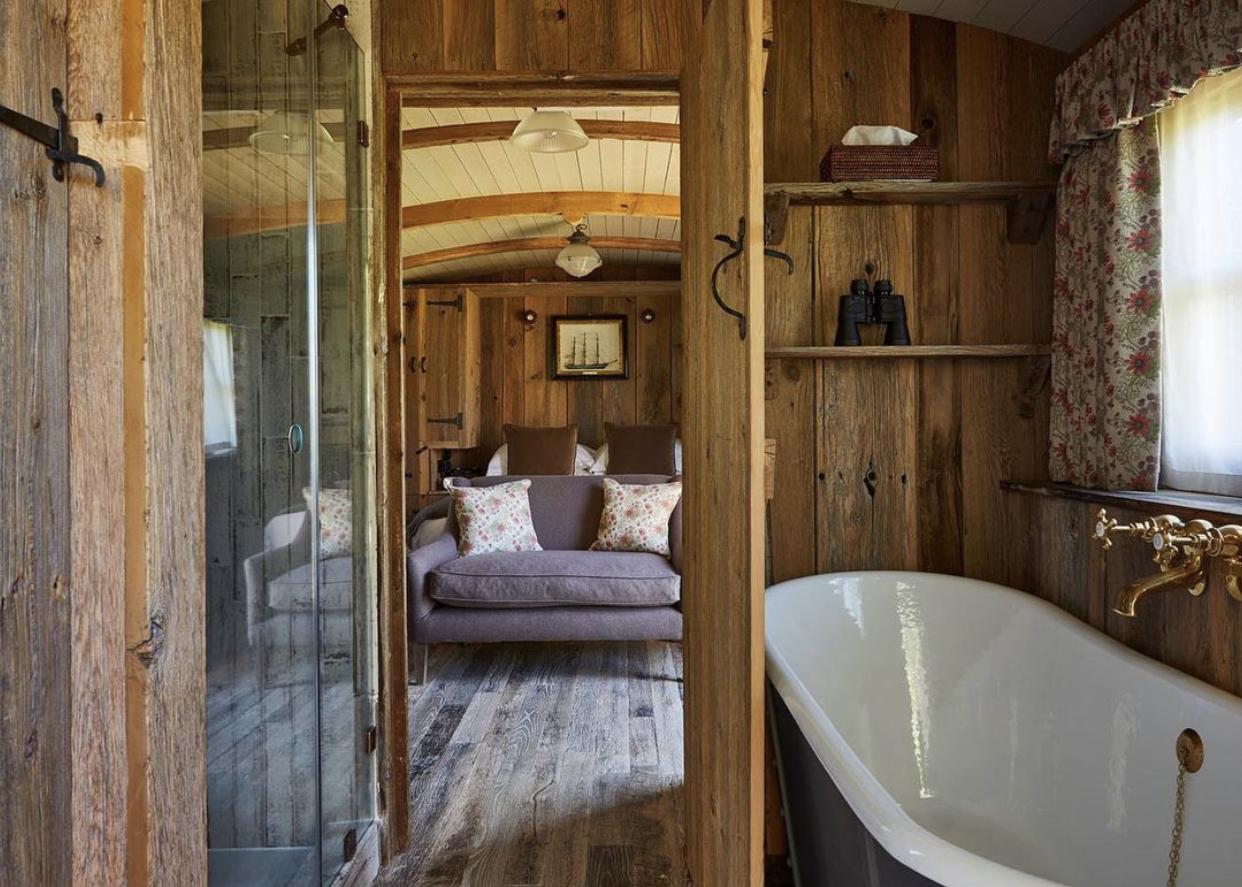 With commercial projects such as this we work closely with the customer to ensure we fulfil the brief and the units will serve their purpose to the utmost. Being lead by a theme or style is fun, and the Pig shepherd’s huts use materials as diverse as scaffold boards, rough sawn, aged interior timber cladding and superb quality en suite bathroom fittings such as cast iron baths and big showers. The Garden Wagons feature some very characterful reclaimed timbers, when we unwrap the packs of timber you can often smell the hay from the barn that the timber came from.